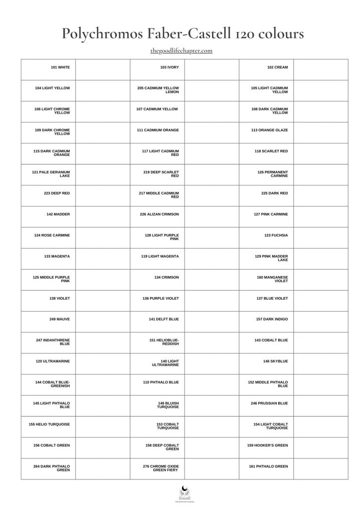 Freebies Free Printable Tarot tracker – A5 Free Blank Polychromos Chart 120 colours – A4 Spread the love